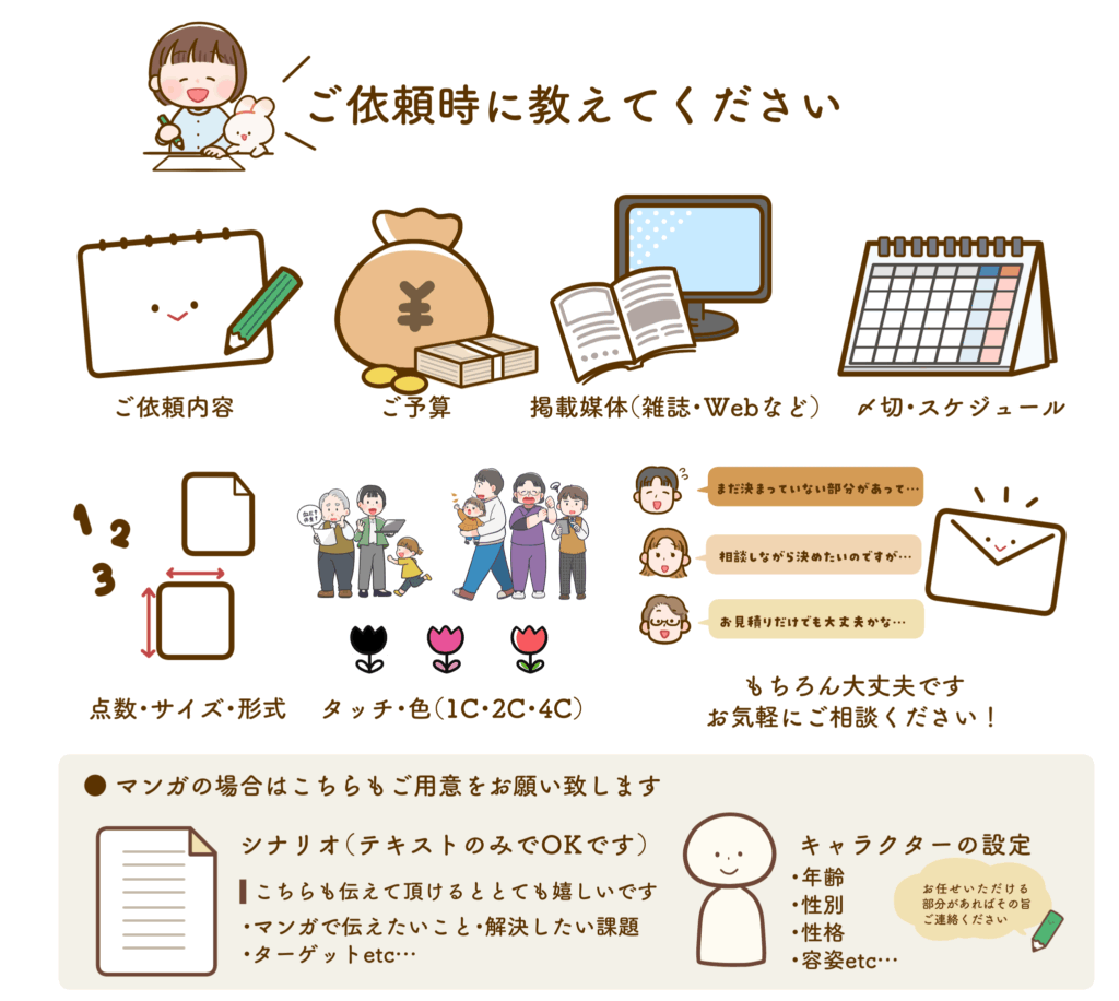 イラストや漫画のご依頼の流れとお取引に関してのポイントをまとめました。