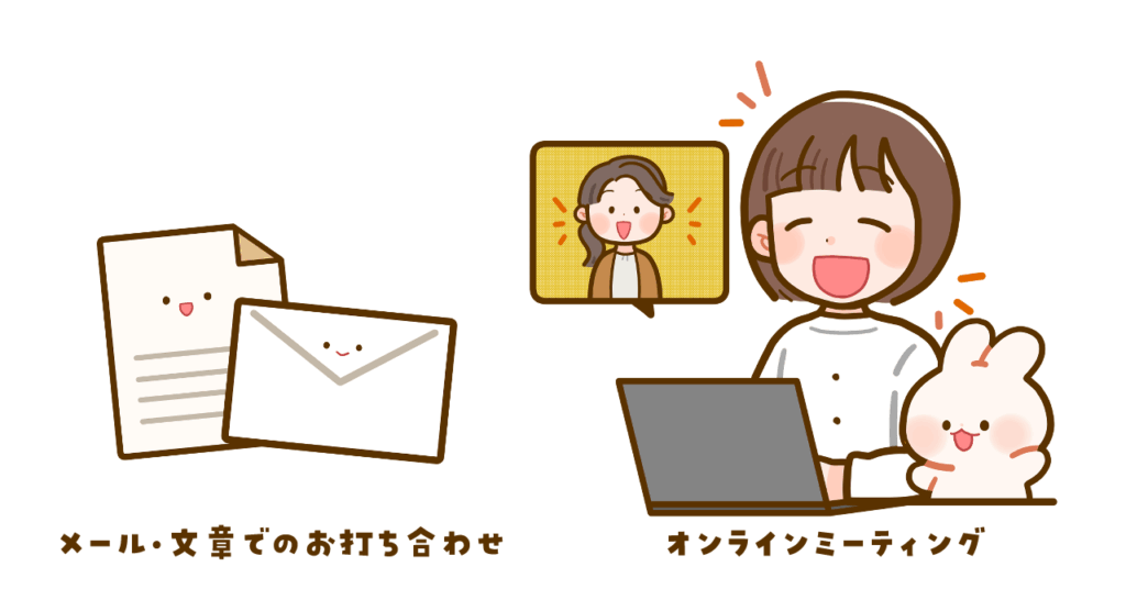お打ち合わせはメールもしくはオンラインミーティング・お電話などで行います。
